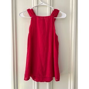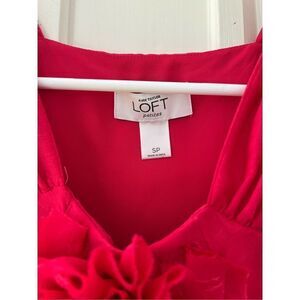 Ann Taylor loft size small petite, hot pink floral ruffle tank, 100% polyester, excellent condition pit to pit 16.5 inches, shoulder to bottom 24 inches.