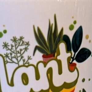 If you're a Plant Lady there is no denying it. Attractive plant motif white ceramic mug features fancy white cursive text shadowed in green, yellow, and burnt orange that reads, PLANT LADY, surrounded by an array of potted pothos, snake plants, succulents, cactus, ficus, herbs, and flowers. Dishwasher and microwave safe. Measures 4” tall with a 3” diameter; 5” across including handle. Holds 11 fluid oz. Designed and printed in the U.S.A. From Loftipop