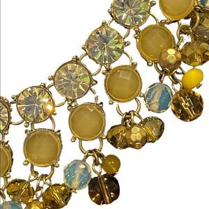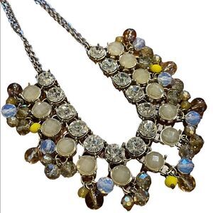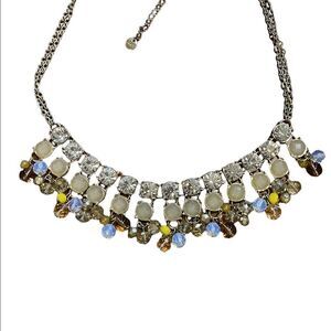 Loft silver tone rhinestone bib necklace. Pastel color beads, blue, yellow and three popping lime green/yellow beads. Approximately 16 inch long and 2.5 inch extension.