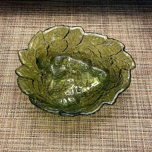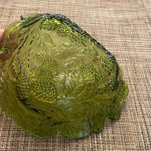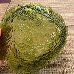 Loganberry Green by Indiana Glass Candy Nut BonBon Dish Berry Leaves MCM Design