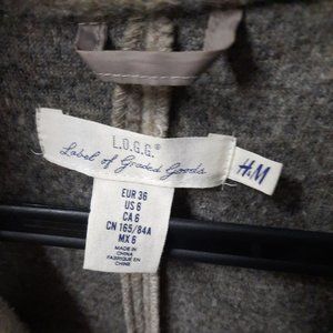 L.o.g.g. H&M Size 6 Womens Wool Blend Coat Jacket Peacoat Overcoat Topcoat Grey