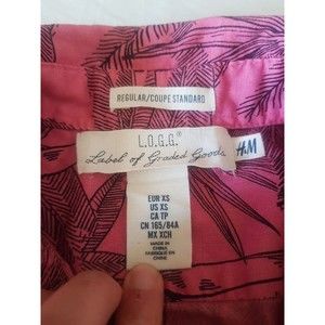 L.o.g.g. Womens Button down Shirt Size XS Pink Palms Print Hawaiian Tropical linen Blend
