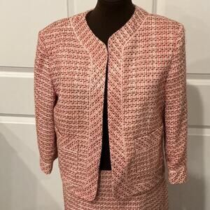 Logic Women’s Academia Career Pink Tweed Plaid Pencil Skirt Set Suit Size 10