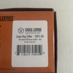 Logical Leather Dog Collar Size Large Premium Full Grain Leather Red 25PC-RD