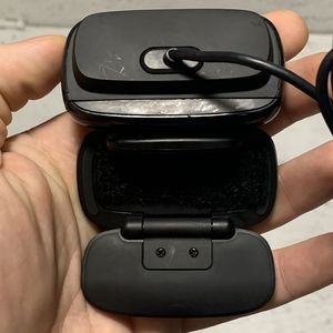 Has light scratches on part of the plastic. I plugged it in and the image looked really nice. Previous owner put Velcro on it.