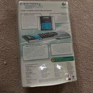 Logitech Harmony 520 Advanced Remote Control. Controls up to 12 devices, all brands. New in package. Package has some slight damage, see photos.