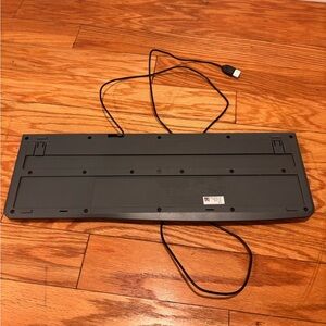 The Logitech K120 USB Keyboard is a standard black keyboard designed for PC use. It features a QWERTY keyboard layout and connects via USB for easy plug-and-play functionality. The keyboard is made of plastic and manufactured in China. With an English keyboard language, this Logitech model is a reliable and straightforward option for everyday computer use.