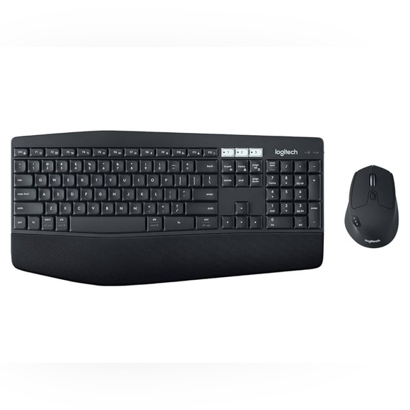 Comes with a USB unifying receiver (found in the mouse’s battery compartment) that is paired with both items, so they can be immediately connected to whatever computer the receiver is plugged into. They can be paired with up to 3 devices, which you can easily switch between using the white numbered buttons on the keyboard and the side buttons on the mouse.