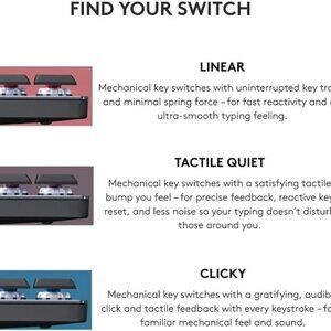 Logitech MX Mechanical Wireless Illuminated Performance Keyboard Introducing MX Mechanical - a full-size keyboard with extraordinary feel, precision, and performance. Low-profile mechanical typing delivers satisfying feedback in your choice of key switches – Tactile Quiet, Clicky, or Linear. MX Mechanical is crafted for ergonomic comfort, with smart illumination and easy-switch – allowing you to connect up to 3 devices and stay in your flow for hours.