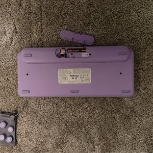 Compact Bluetooth Logitech keyboard in a vibrant purple shade. Ideal for modern workspaces. Only used a few times.