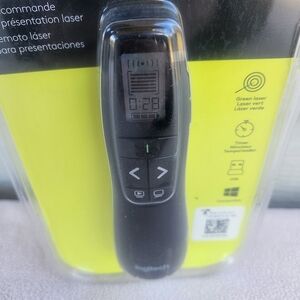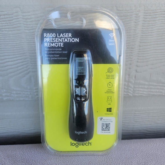 Logitech R800 Laser Presentation Remote PowerPoint Clicker Green Laser Timer. Brand new, factory sealed as shown. Ships in a box. Smoke-free.
