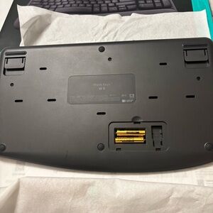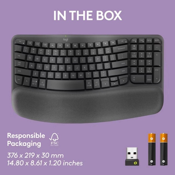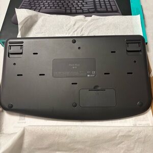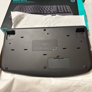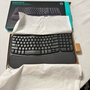 In excellent like new condition Logitech Wave Keys Wireless Ergonomic Keyboard with Palm Rest in gray/black offers a comfortable and efficient typing experience. The ergonomic design allows for a more natural hand and wrist position, reducing strain during long hours of use. The wireless connectivity provides flexibility in placement, while the QWERTY layout and English language ensure ease of use. Additionally, the enhanced function keys and plug & play feature enhance the overall functionality of the keyboard. This Logitech model is a reliable and stylish choice for anyone looking for a high-quality keyboard.