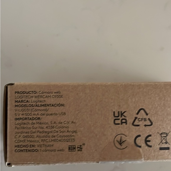 Logitech webcam packaging. Compact and informative. Ideal for tech enthusiasts.
