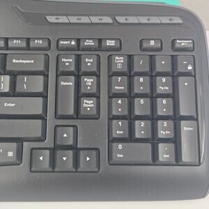 - Full-size keyboard layout with integrated number pad and media controls