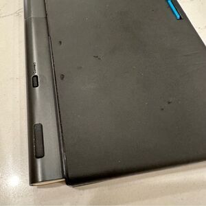 Sleek Logitech keyboard designed for tablets. Features a striking blue accent.