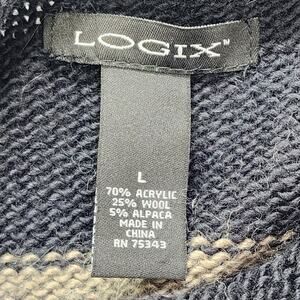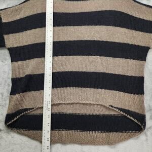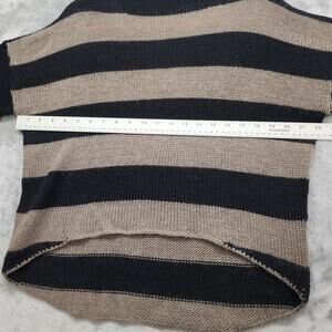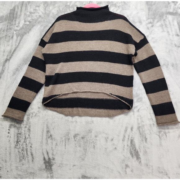 Logix Wool Alpaca Striped Funnel Neck High Low Sweater Size L Black Tan Stretch