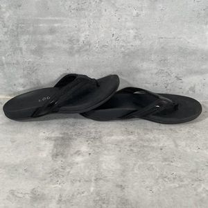 Logix Womens Thong Sandals Black Patent Leather Orthopedic Flat Heel 7 M EUC.