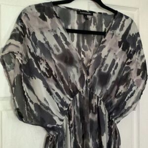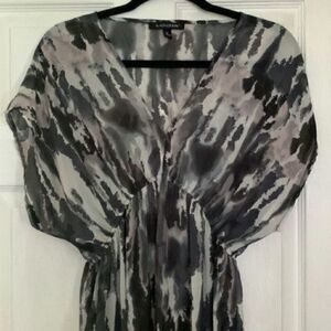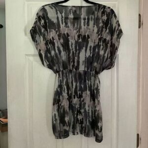 Logix gray & black printed sleeveless empire waist beach coverup size small