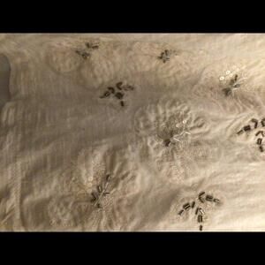 Logo 3/4 sleeve Tunic with Embroidered and Beaded Flowers in Size Large