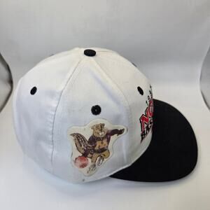 Vintage 1997 NCAA Basketball Championship hat by Logo 7 with added Minnesota Gophers iron-on patches on both sides. Classic black brim, snapback closure, and crisp embroidered tournament design. Some light discoloration on the interior and minor exterior marks from age and wear. A unique crossover collectible for NCAA fans and Minnesota supporters.