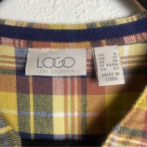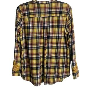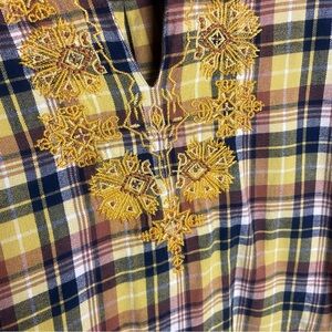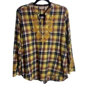 Logo By Lori Goldstein Size 8 Tunic Embroidered Plaid Flannel Shirt Yellow Boho