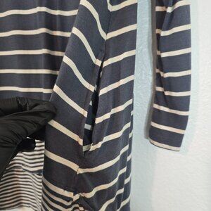 Logo By Lori Goldstein Tunic Blouse Top Women Large Gray Striped Pocket Hi Low Boho Lagenlook. Pre-owned
