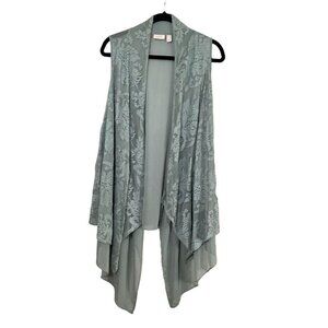 Logo Floral Cardigan 1X Blue Embroidery Hi Lo Sheer Boho Western Preppy Classic