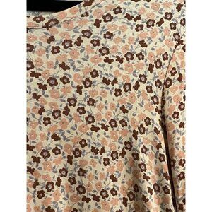 Logo by Lori Goldstein Womens Top Size M Floral Brown Tunic Round Neck Pink Soft.