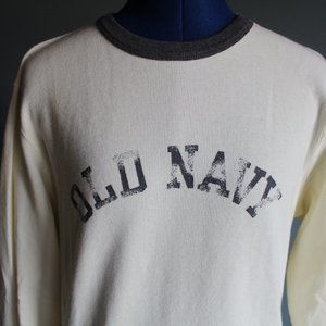 Old Navy Men's Cream/Gray Logo Graphic Long Sleeve Crew Neck Shirt ~S~ 307292