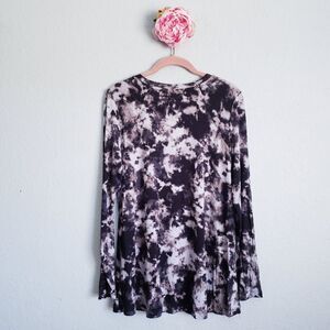 Logo Gray and Black Tie Dye Long Sleeve Tunic with Pockets