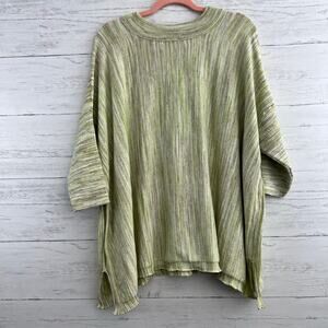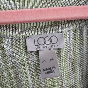 LOGO Lori Goldstein green V Neck Pullover knit top - all over green and white heather color - short sleeves with v neckline - super soft and stretchy cotton blend knit material - oversized boxy fit - excellent condition Approx measurements: Pit to pit: 32” Shoulder to hem: 27.5”