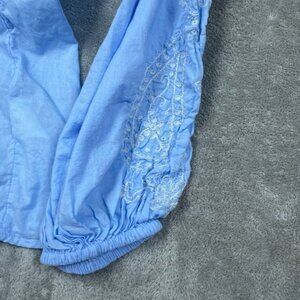 Logo Lavish Light Blue Embroidered Smocked Blouse Long Sleeve Cotton L a0506