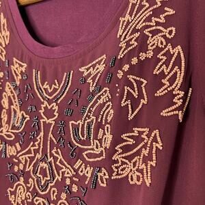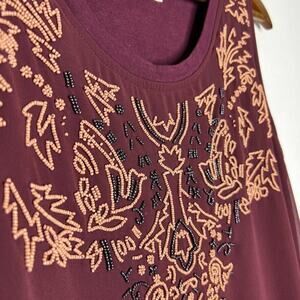 Logo Lavish Lori Goldstein Beaded Chiffon Overlay Tank Top M Women