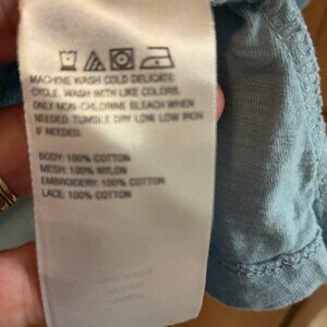 Cotton body with nylon mesh eyelet style outer shell. Very roomy. Could be a Medium, although it says small.