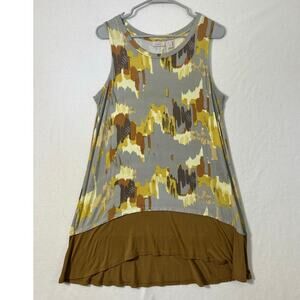 Logo Layers Lori Goldstein Top M Grey Brown Hi Low Flowy