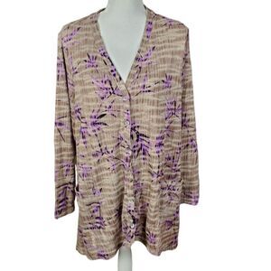 Logo Lori Goldstein Cardigan Size 1X Floral Purple Brown Artsy Cottagecore