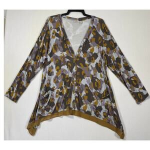 Logo Lori Goldstein Cardigan Top XL Flowy Gray Gold Button