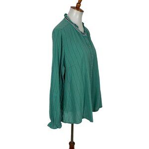 Logo Lori Goldstein Green Blouse Large Button Down Long Sleeve