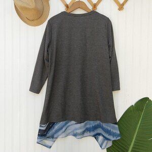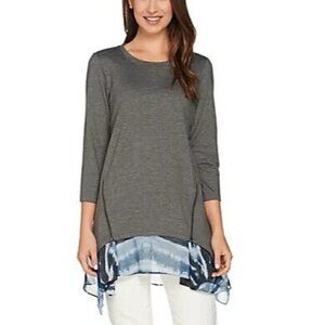 Logo Lori Goldstein Lounge Zip Chiffon Hem Tunic Top Size S Gray Blue Sharkbite