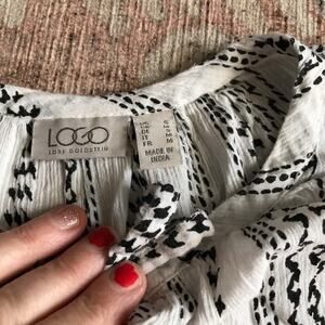 Elevate your wardrobe with this stylish Logo Lori Goldstein oversized blouse! Made from 100% cotton, this blouse features a unique front tie around the neck, adding a touch of elegance to your outfit. The oversized fit ensures comfort and a relaxed silhouette. Perfect for any occasion, dress it up or down for a versatile look.