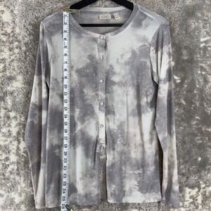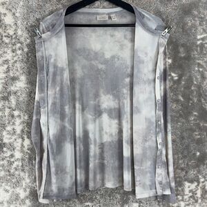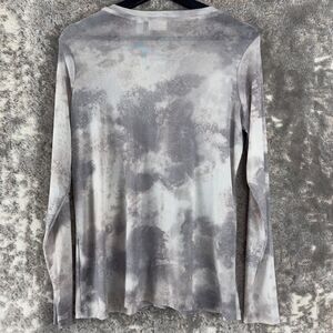Logo Lori Goldstein Size XS Sheer Stretch Tie Dye Top Gray Button Long Sleeve