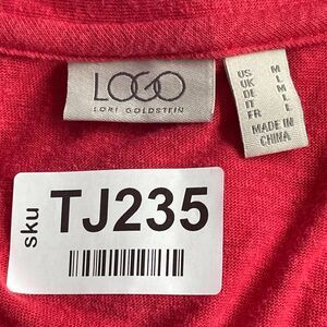 Logo Lori Goldstein Tie Front Cardigan Sweater Women Size M Red Pockets Linen