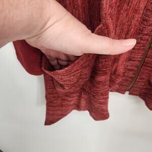 Logo Lori Goldstein Variegated Burgundy V-Neck Zippered Cardigan Women's S