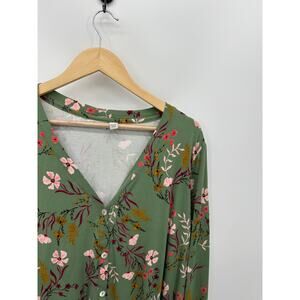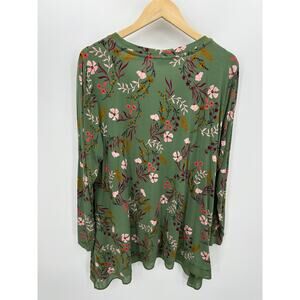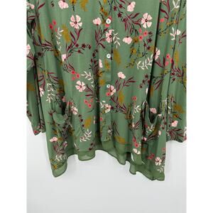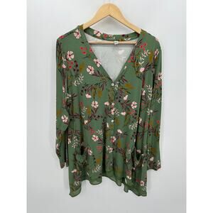 Logo Lori Goldstein Women Button Front Floral Tunic Size XL Green Earthy Stretch
