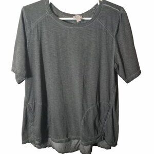 Logo Lori Goldstein Womens Gray Short Sleeve Tunic Top Pockets Size L A592714