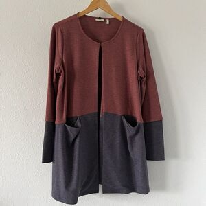 Logo Lounge Colorblock Cardigan Womens Medium Knit Pocket Longline Waffle Sleeve