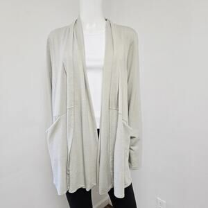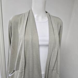 Logo Lounge Lori Goldstein Cardigan Size XL Gray Open Front Pockets Mixed Media