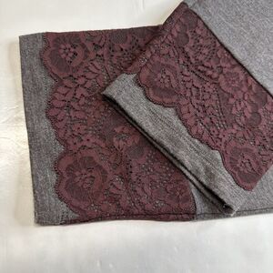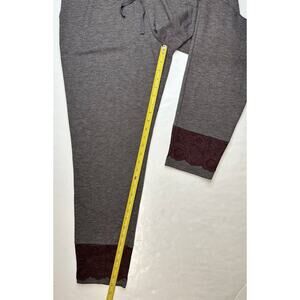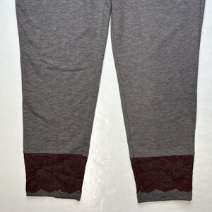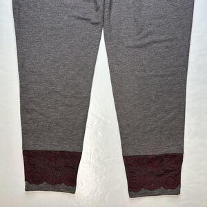 Logo Lounge Skinny Pants Womens Large Gray Pull On Stretch So Soft Pants With Maroon Lace Hem Detail. Comfy Lounge Weekend House Casual Vacation Leisure