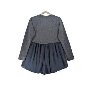 Logo Lounge Tunic Blouse XS Gray Crew Neck Long Sleeve Pockets Hi Low Knit Loose