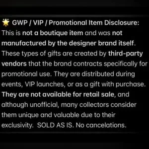 GWP items are VIP customer gifts or promotional gifts with certain items. Not made by the brand but made for the brand. NOTE PLEASE DO NOT PURCHASE IF UNFAMILIAR WITH GWP ITEMS.